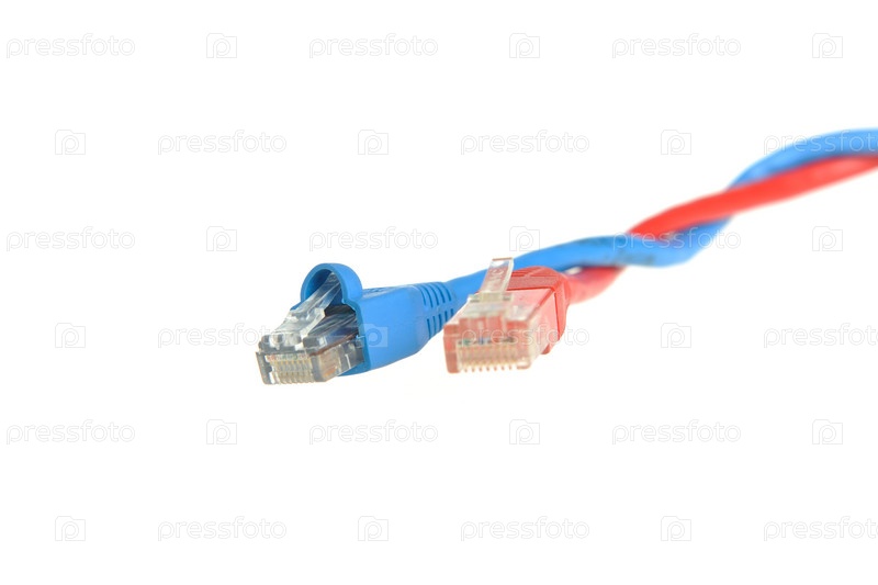 Перекрученные сетевые компьютерные кабели на белом фоне