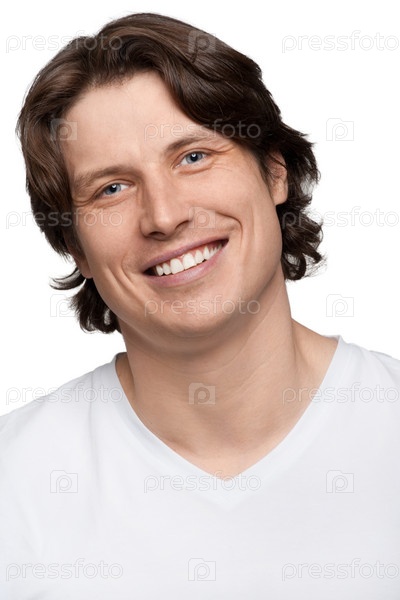 Портрет молодого улыбающегося мужчины крупным планом, изолирован на белом