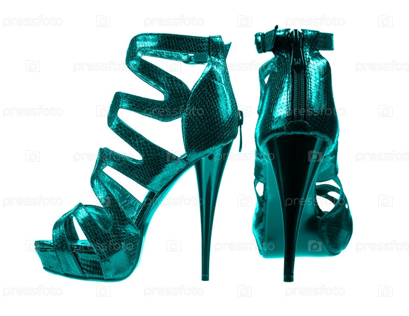 Бирюзовые женские туфли, коллаж