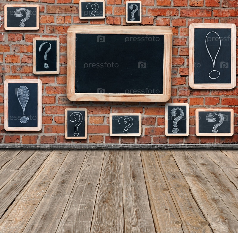 Вопросительные и восклицательные знаки на досках на стене