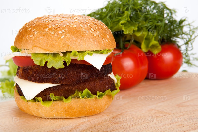 Большой гамбургер на белом фоне