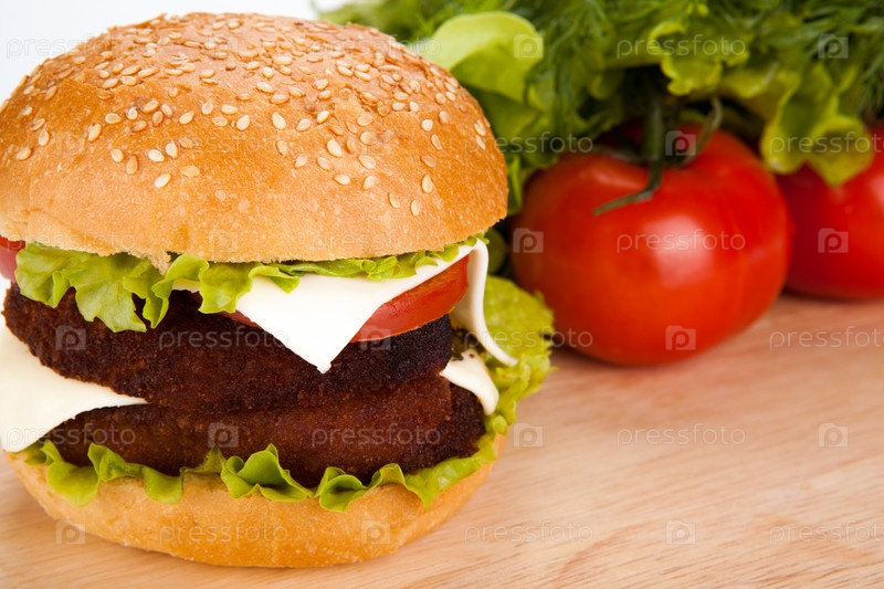 Большой гамбургер на белом фоне