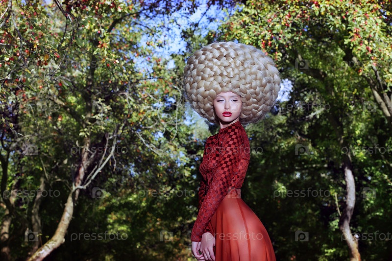 Женщина в искусственном парике с косами