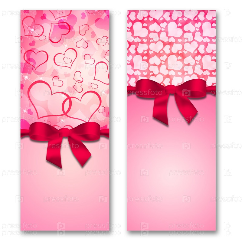 Открытка с сердечками и лентой с бантом