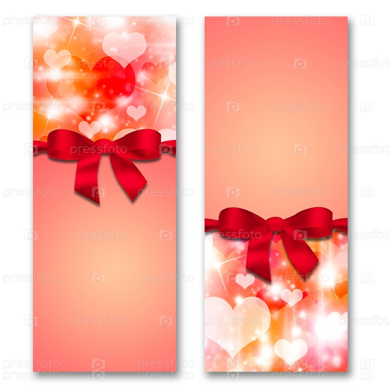 Открытка с сердечками и лентой с бантом