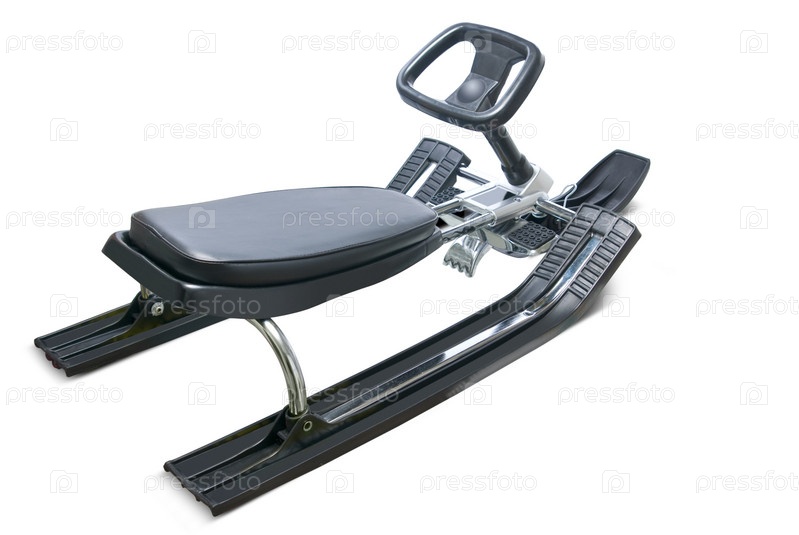 Черный снегокат на белом фоне
