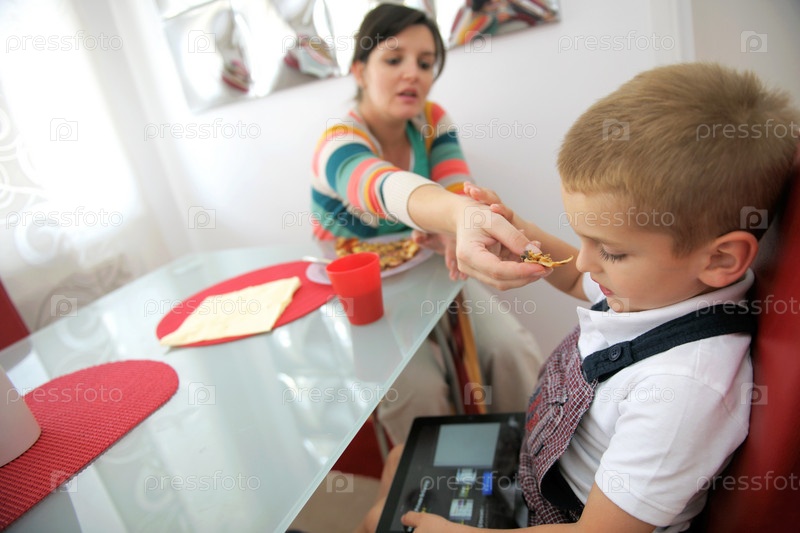 Семья ест пиццу