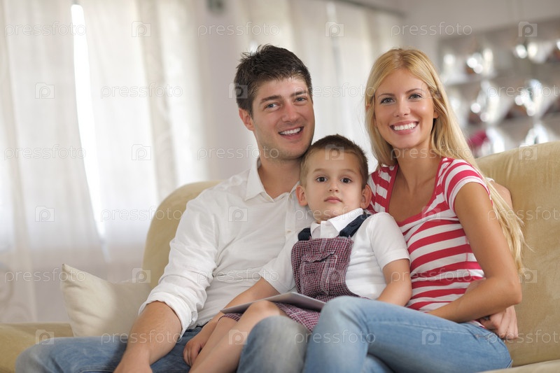 Семья использует планшетный компьютер