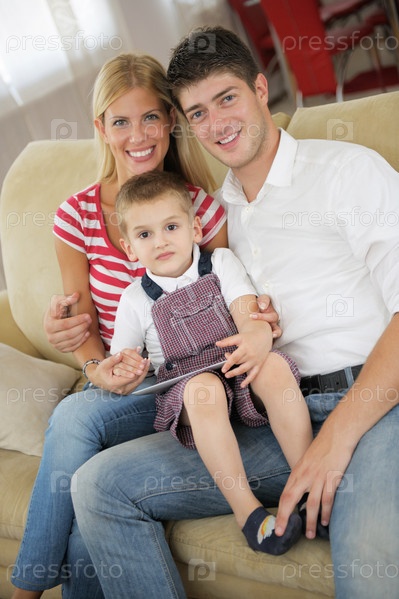 Семья использует планшетный компьютер