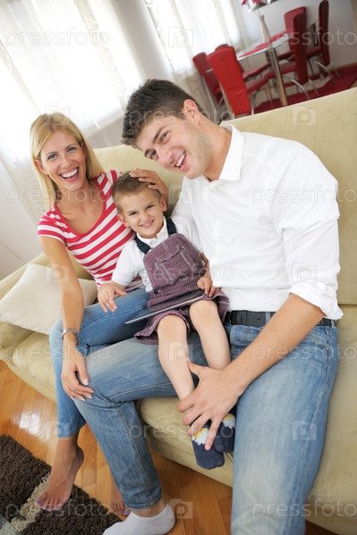 Семья использует планшетный компьютер