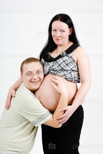 Счастливые мужчина и беременная женщина