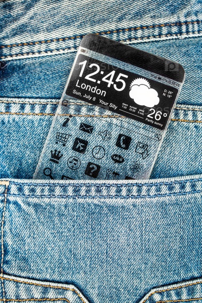 Смартфон с прозрачным экраном в кармане джинсов