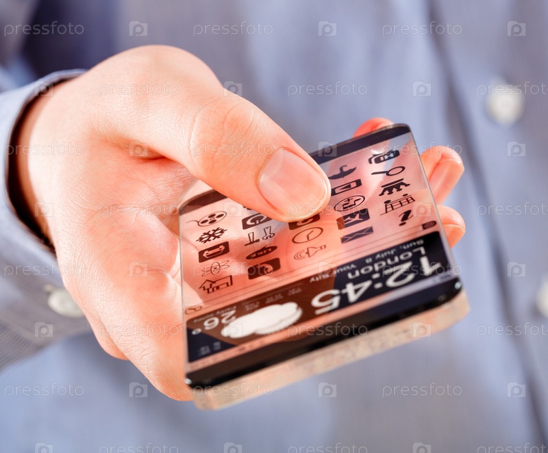 Смартфон с прозрачным экраном в человеческих руках