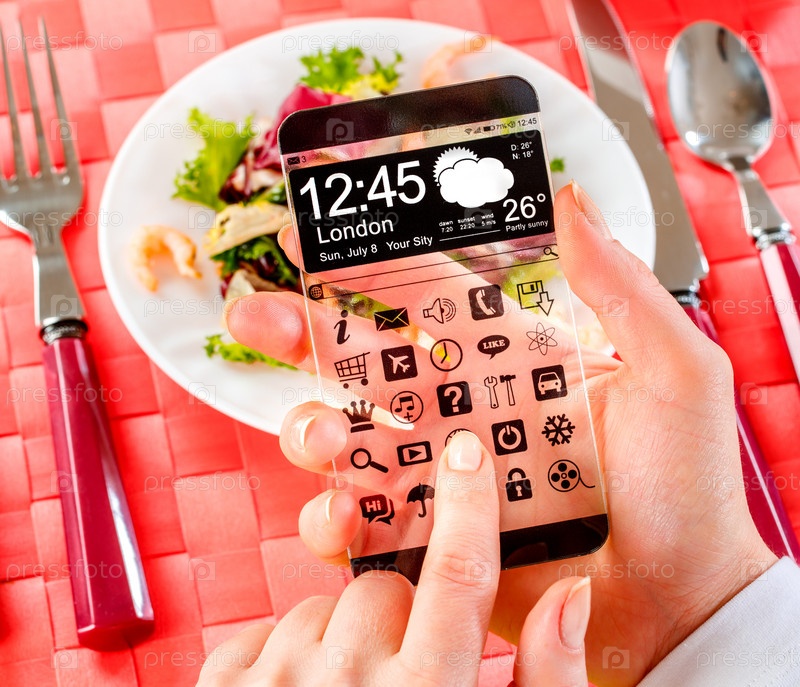 Смартфон с прозрачным экраном в человеческих руках