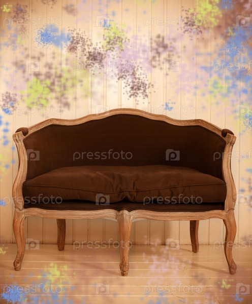 Старый коричневый диван в комнате