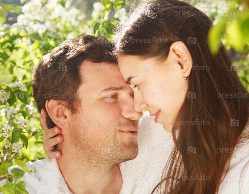 Молодая счастливая пара в весеннем парке