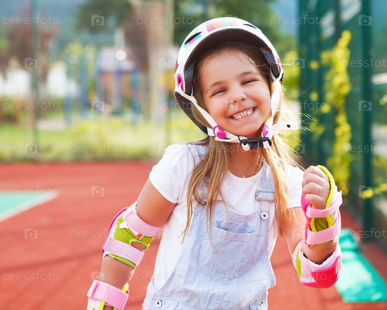 Девочка на роликах в парке