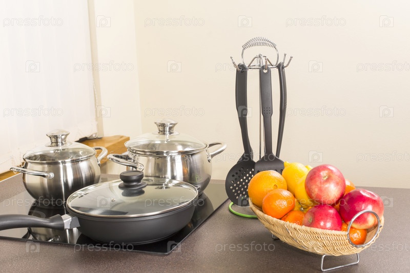 Стеклокерамическая плита с кастрюлями