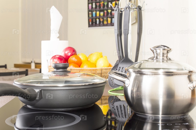 Стеклокерамическая плита с кастрюлями