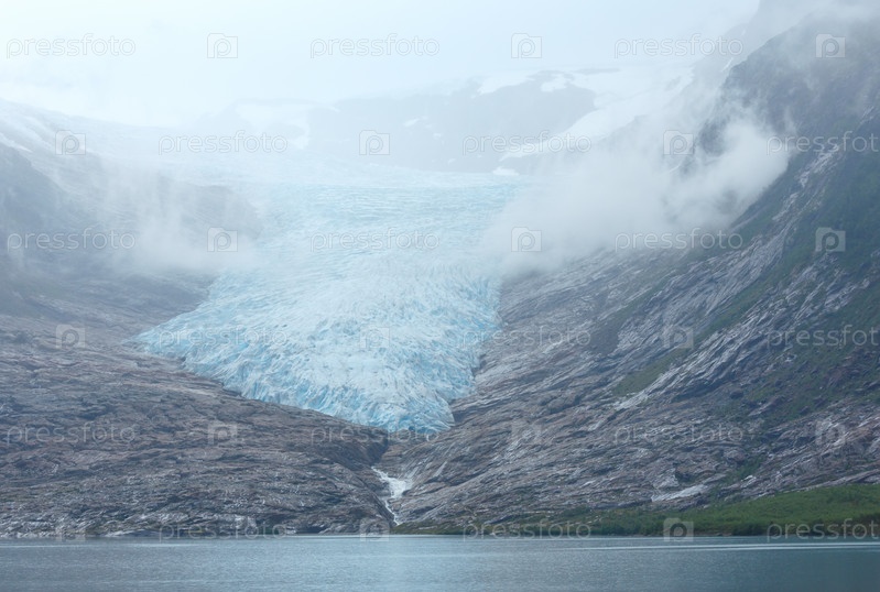 Озеро Свартисватнет и вид на ледник Свартисен, Норвегия