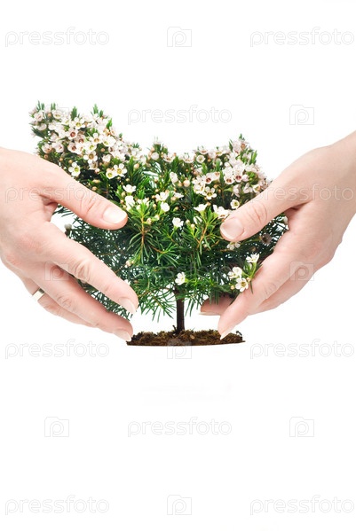 Женские руки, оберегающие комнатное растение