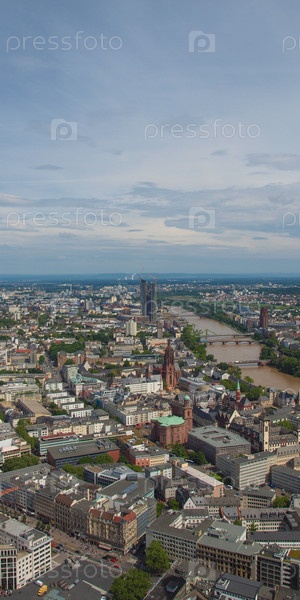 Вид города Франкфурт-на-Майне в Германии с воздуха