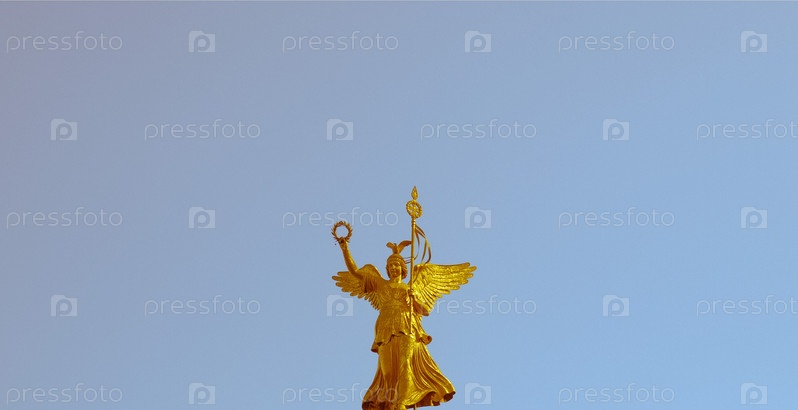 Статуя ангела в парке Тиргартен на фоне голубого неба, Берлин
