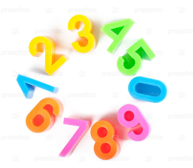 Разноцветные магнитные цифры на белом фоне
