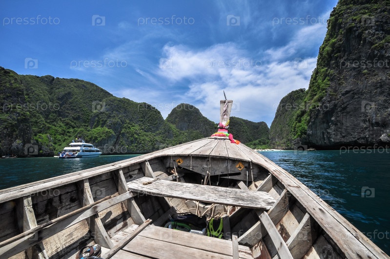 Традиционная деревянная лодка в бухте Майя на острове Пхи-Пхи, Таиланд, Азия