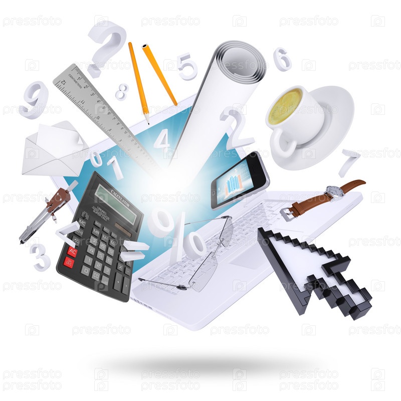 Ноутбук и офисные принадлежности
