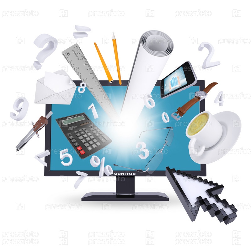 Монитор и офисные принадлежности