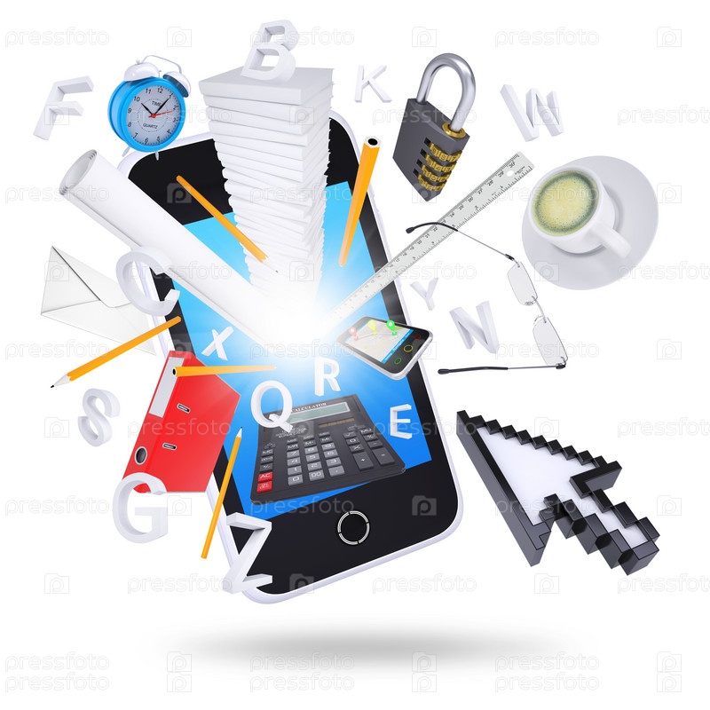 Смартфон и офисные принадлежности
