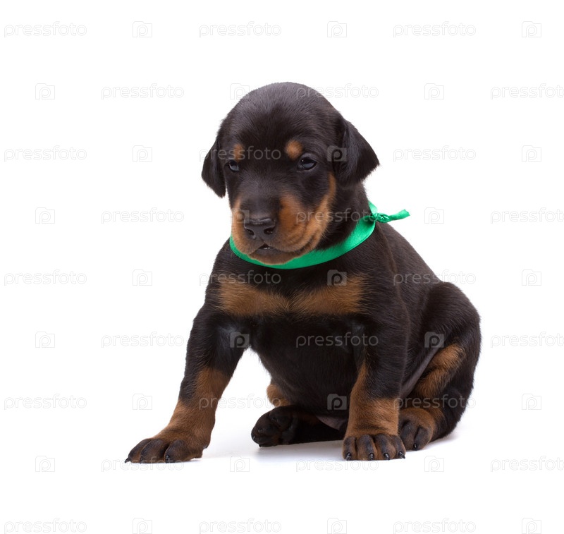 Щенок добермана в зеленой ленте