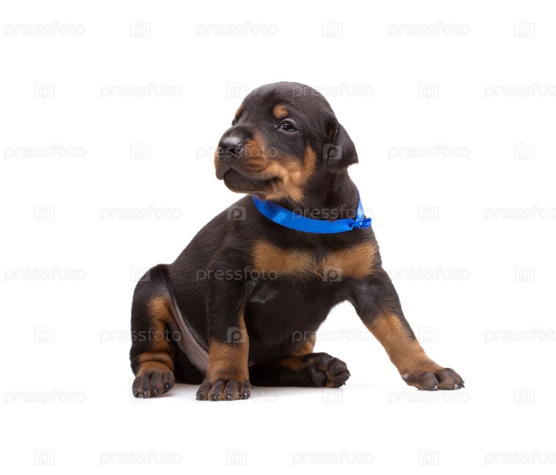 Щенок добермана в синей ленте