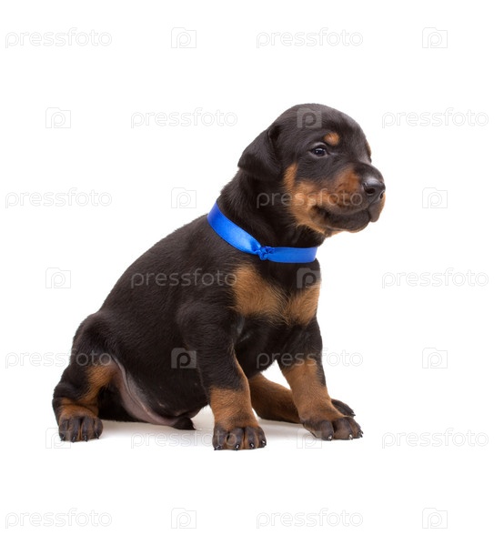 Щенок добермана в синей ленте