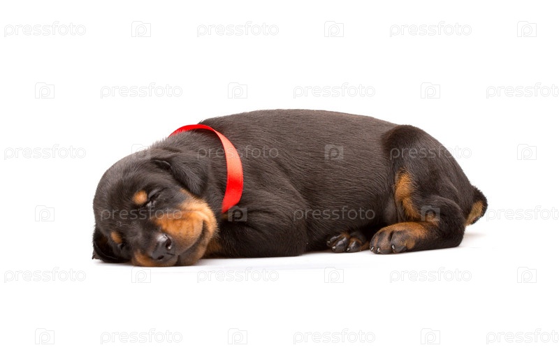 Щенок добермана в красной ленте