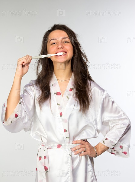 Женщина в пеньюаре с зубной щеткой
