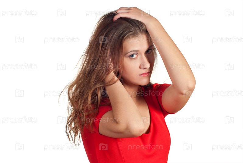 Молодая женщина в красном платье. Изолирована на белом фоне