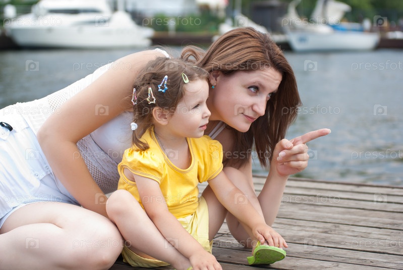 Мать и дочь на пирсе яхт-клуба