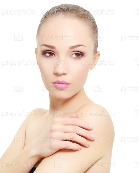 Красивая девушка с идеальным макияжем, изолированная на белом