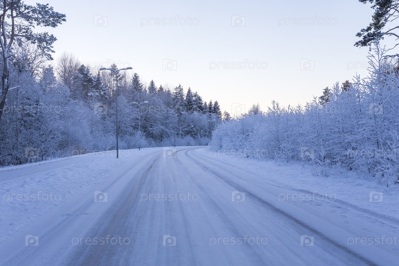 Дорога, покрытая снегом, в лесу