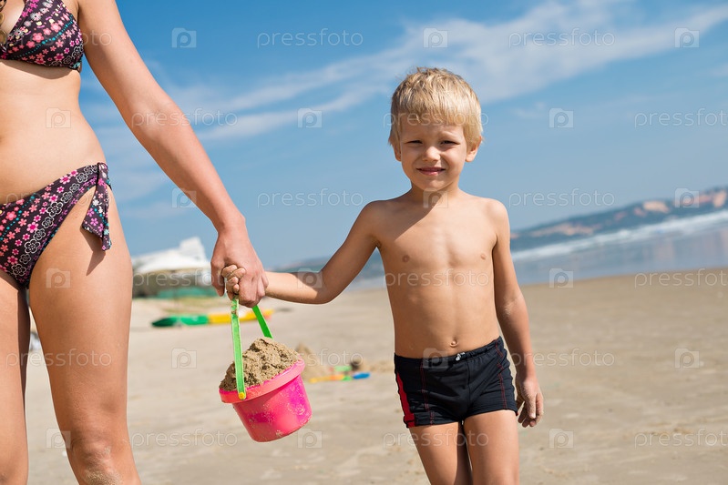 Мальчик с матерью на пляже