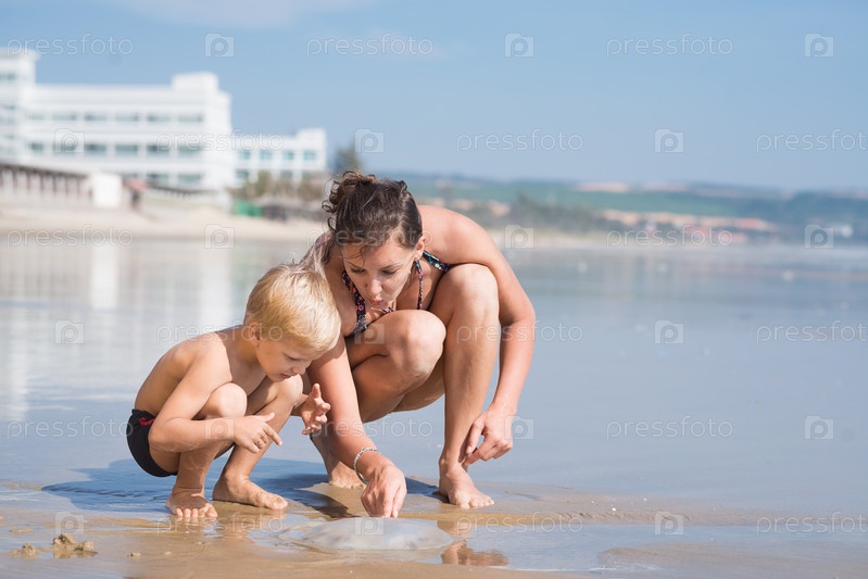 Мальчик с матерью на пляже