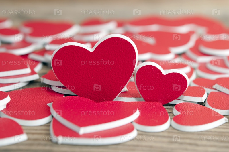 Два красных сердечка на деревянном фоне