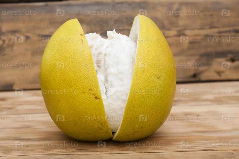 Помело на старом деревянном столе