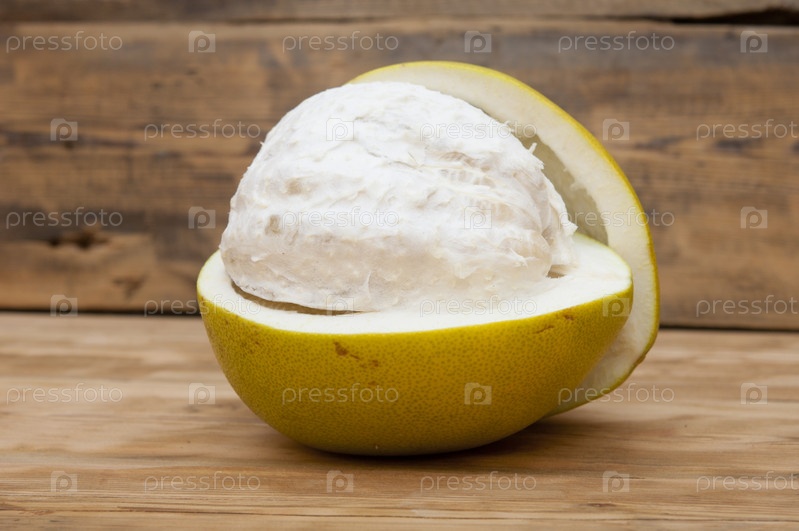 Помело на старом деревянном столе