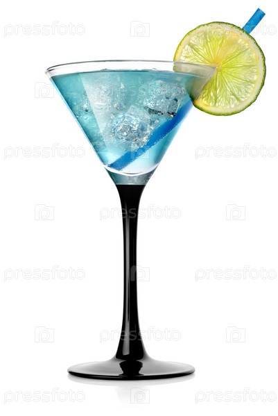 Голубой коктейль с лаймом и льдом