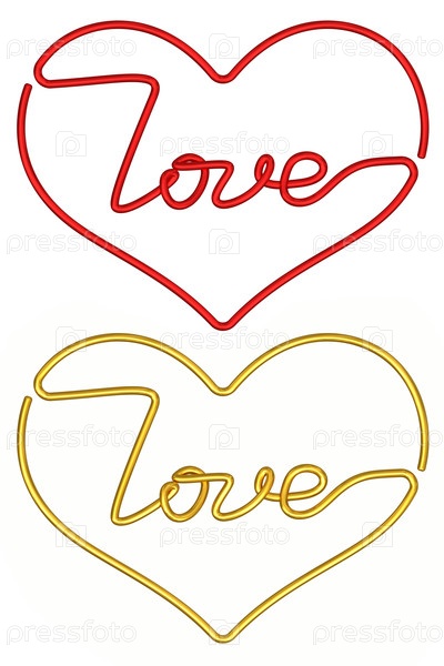 Сердце из проволоки со словом 'любовь', изолированное на белом. 3D-изоляция высокого разрешения