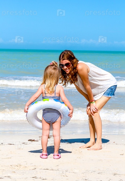 Мама и дочь отдыхают на пляже