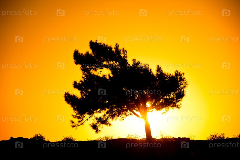 Силуэт дерева в лучах восходящего солнца